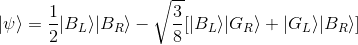这里 B 和 G 分别表示 好吃(Good)和难吃(Bad)的本征态. 下标 L 和 R 分别表示左边 (Left/Lucy) 和右边(Right/Ricardo) 的状态. 同时,用 R 和 N 表示已膨胀(Risen)和未膨胀(Not risen)的本征态. 并且有