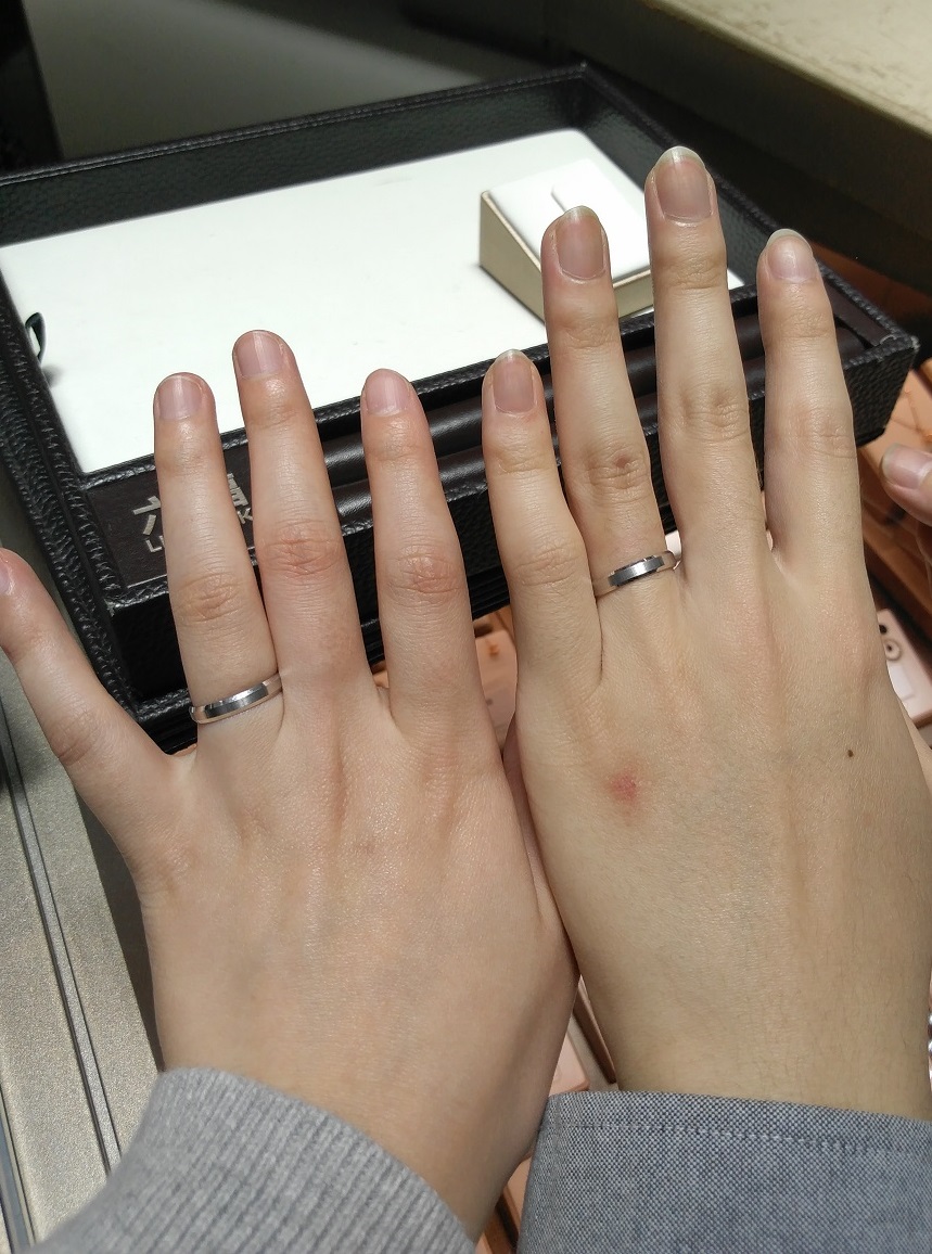 这是我们最终选择的戒指,中间拉丝处理(耐磨),两边光面斜面,佩戴舒适,价格也是最便宜的了。今晚回家,cuihao的戒指已经伤痕累累….mdzz我觉得白花了那么多钱!