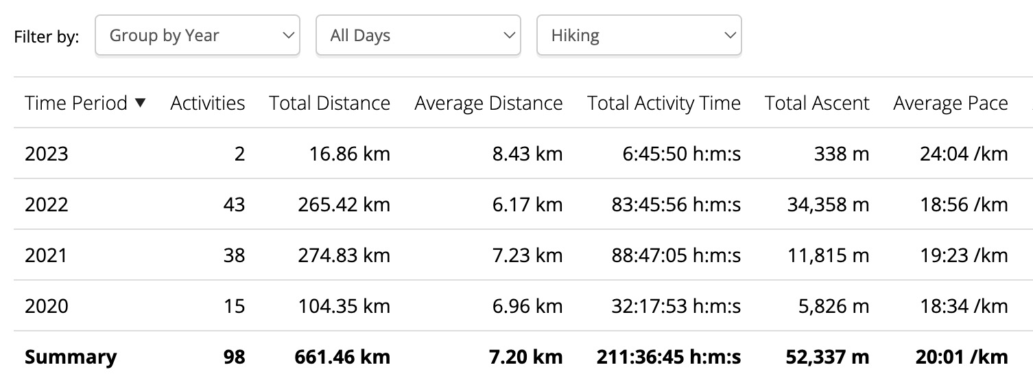 - 2020年应该是跑步距离最长的一年,因为手表是5月买的,前4个月没有统计
